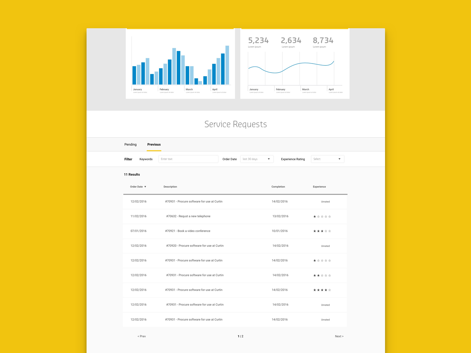 Dashboard for University Staff member to view and manage their IT requests cont.